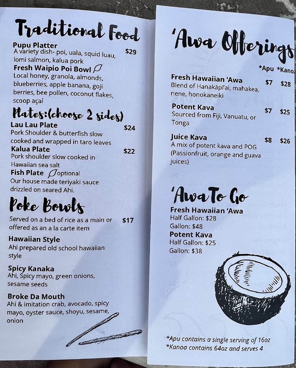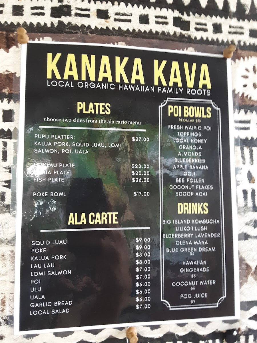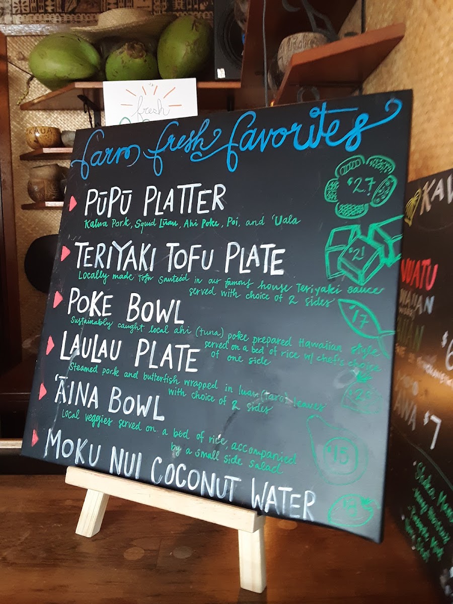 Kalua pork, squid luan, ahi poke, poi, and uala